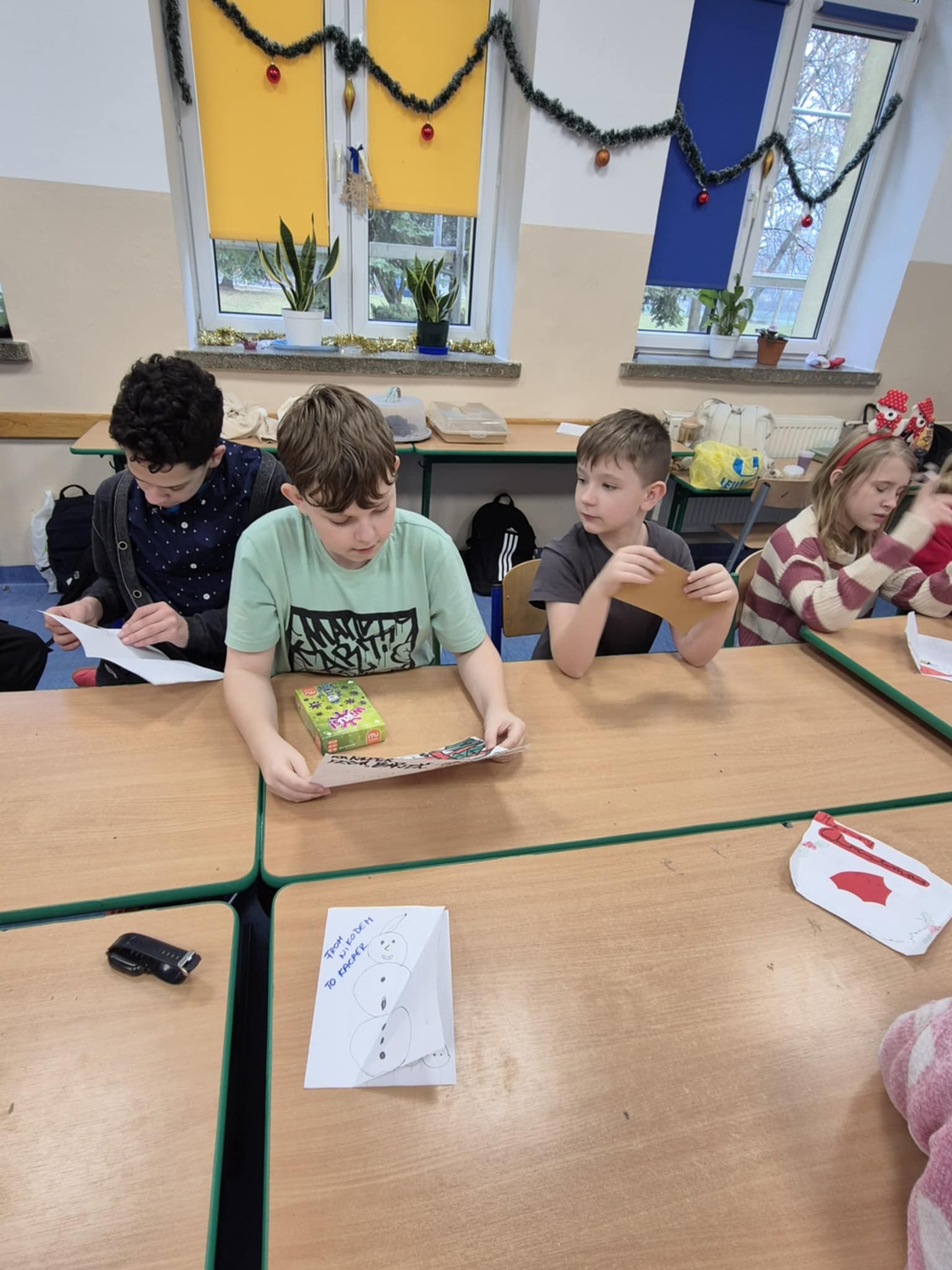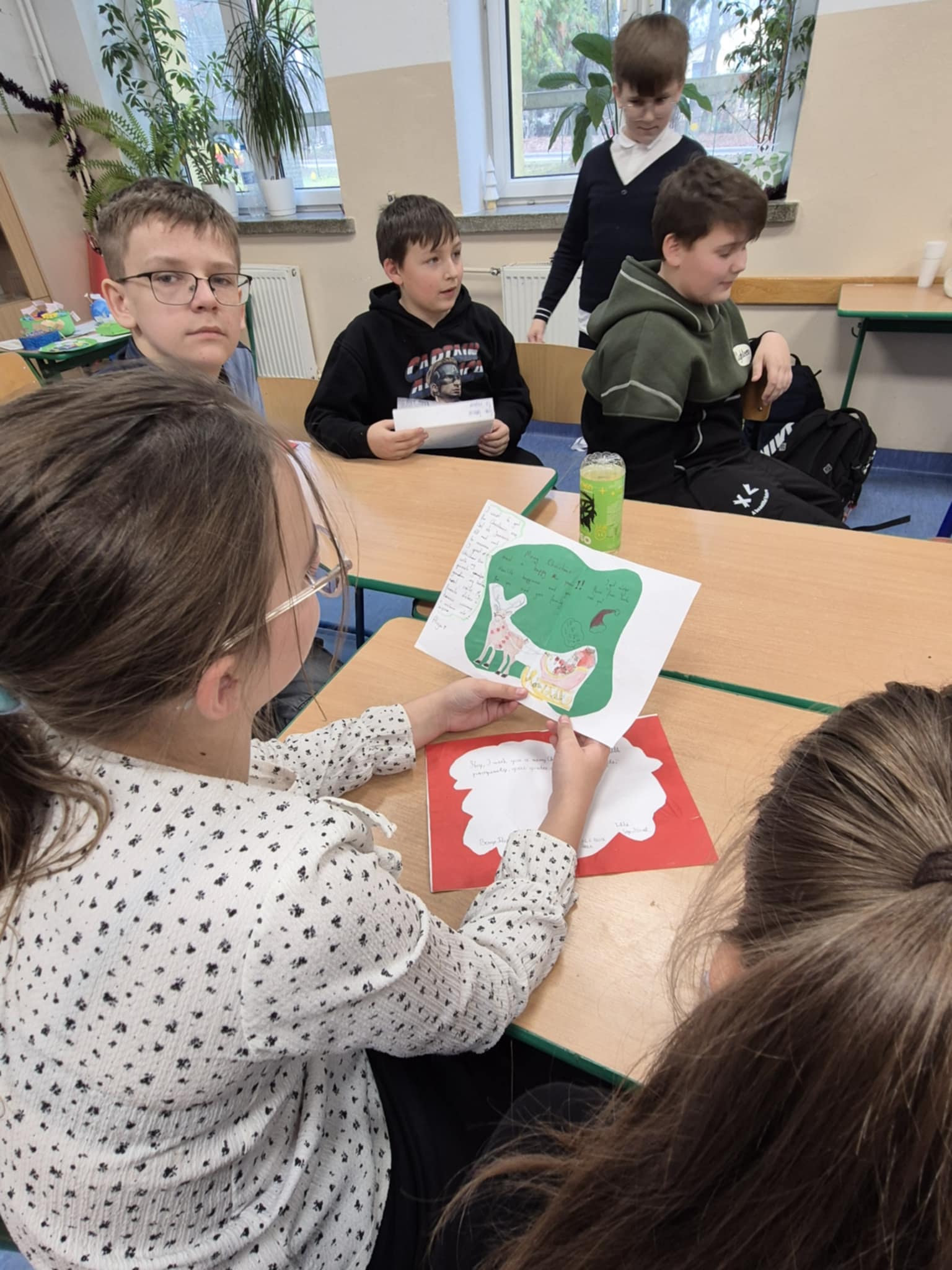 W bieżącym roku szkolnym uczniowie klasy 5 biorą udział w innowacyjnych lekcjach języka angielskiego pod nazwą „Friendship through letters- rozwijanie kompetencji komunikacyjnych w języku angielskim”. Głównym celem innowacji jest rozwijanie umiejętności językowych uczniów poprzez autentyczną komunikację z rówieśnikami z innej szkoły. Projekt opiera się na wymianie listów oraz kartek okolicznościowych w języku angielskim, co pozwala uczniom uczyć się języka w praktyczny i atrakcyjny sposób. W ramach współpracy nawiązaliśmy kontakt ze Szkołą Podstawową Nr 133 im. Orła Białego w Krakowie, z którą regularnie wymieniamy korespondencję. Uczniowie z dużym zaangażowaniem przygotowują listy, opisują siebie, swoje zainteresowania, szkołę oraz codzienne życie, jednocześnie doskonaląc umiejętności pisania, czytania i poszerzając słownictwo w języku angielskim. Szczególną radość sprawiło nam otrzymanie pięknych kartek świątecznych z życzeniami od naszych partnerów z Krakowa. Kartki, przygotowane z dużą starannością i pomysłowością, były nie tylko miłym gestem, ale także doskonałą okazją do kontaktu z językiem angielskim w naturalnym kontekście. Uczniowie z entuzjazmem czytali życzenia i chętnie dzielili się swoimi wrażeniami. Realizacja innowacji „Friendship through letters” sprzyja nie tylko nauce języka obcego, ale również rozwija kompetencje społeczne, uczy otwartości, empatii oraz budowania relacji. Projekt pokazuje, że nauka języka angielskiego może być ciekawa, inspirująca i pełna pozytywnych emocji.