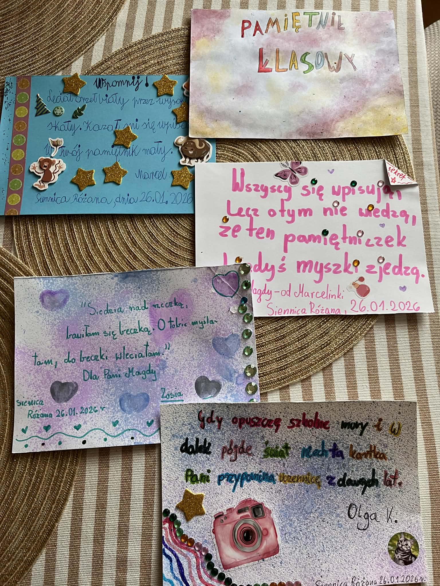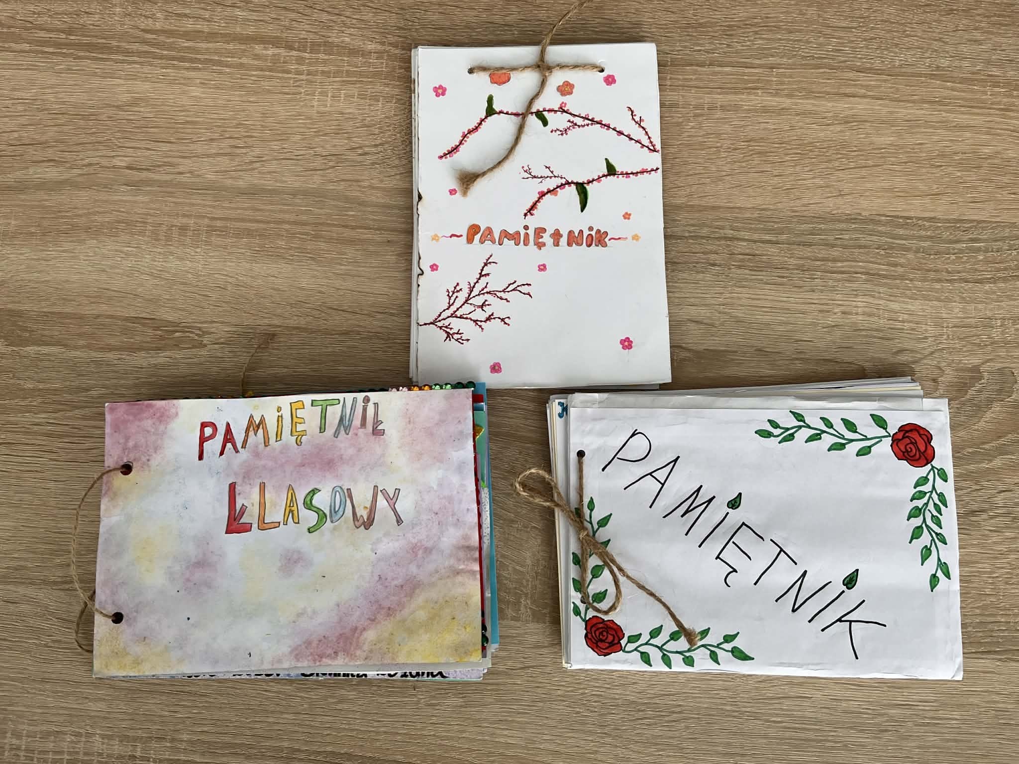 Z kolei uczniowie klas 4-6 tworzyli własne wpisy do pamiętników. Każda klasa przygotowała pojedyncze kartki, które zostały spięte w klasowe pamiętniki. Gotowe prace to niespodzianki przeznaczone dla wybranych przez uczniów osób.