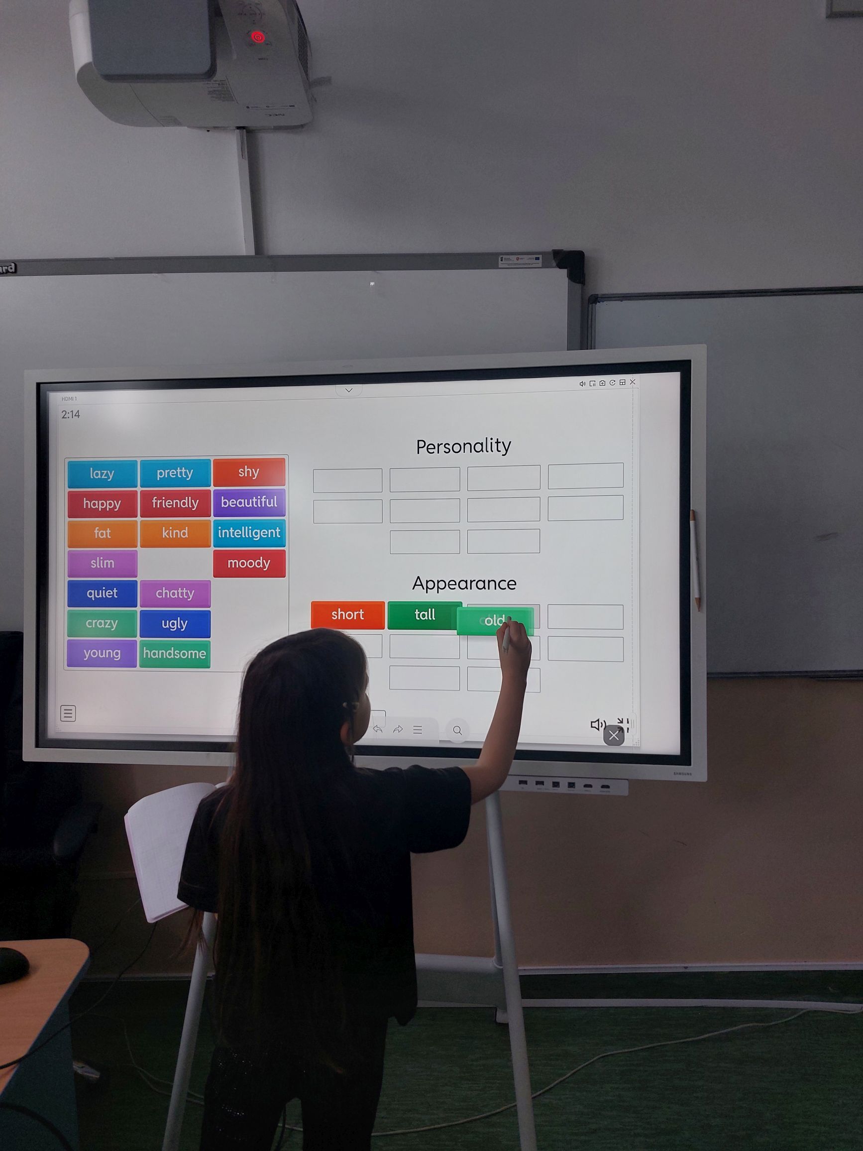 Systematyczne wykorzystywanie TIK w projekcie edukacyjnym znacznie uatrakcyjnia zajęcia, a tym samym aktywizuje uczniów do intensywnej pracy. W ostatnim tygodniu I semestru realizowano na zajęciach zagadnienia związane z opisywaniem wyglądu oraz cech charakteru człowieka. Uczniowie byli bardzo zaangażowani w wykonywanie różnorodnych zadań interaktywnych, a przy okazji okazywali sobie wzajemne wsparcie w przypadku napotykania na różnego rodzaju trudności.