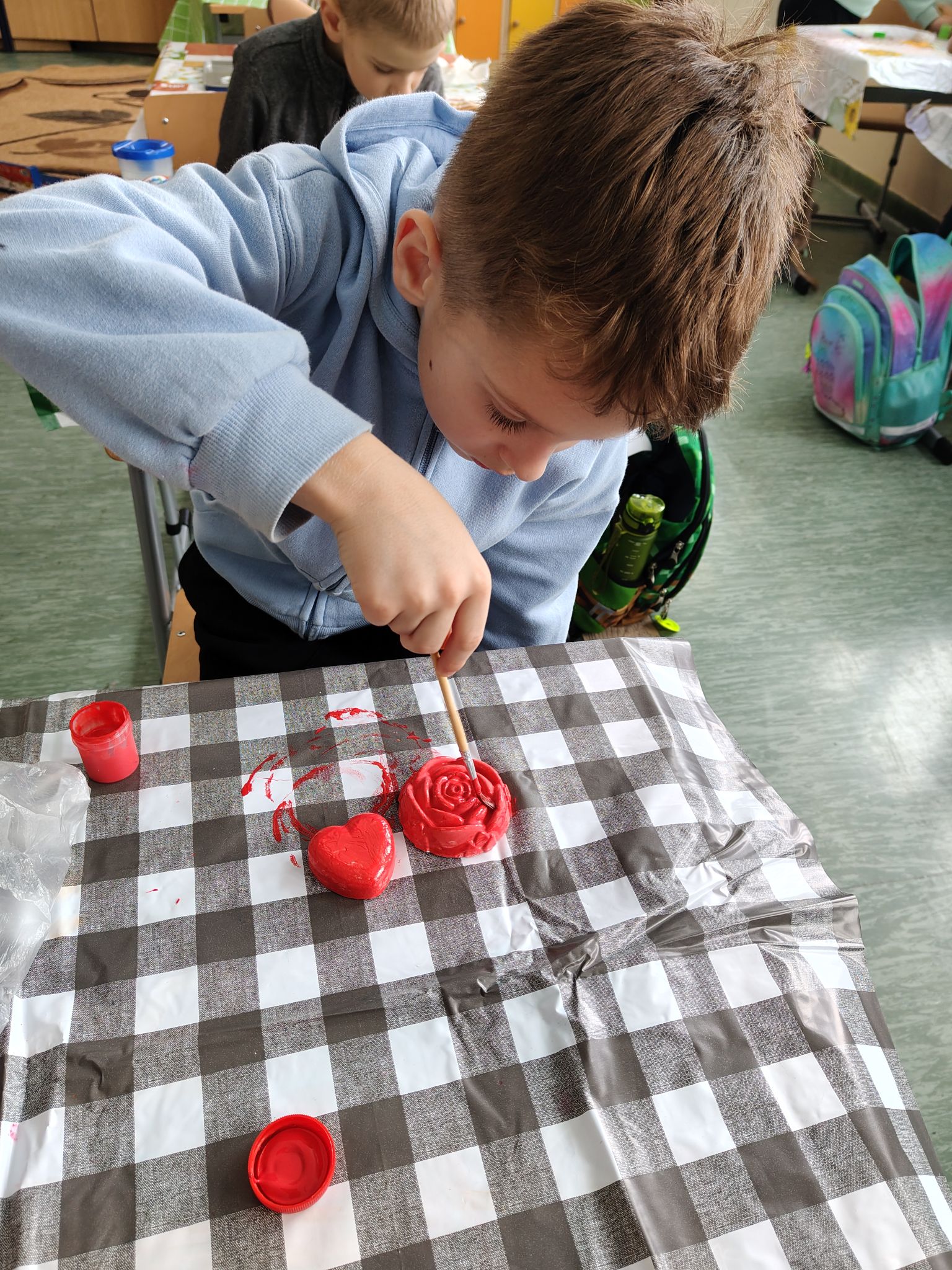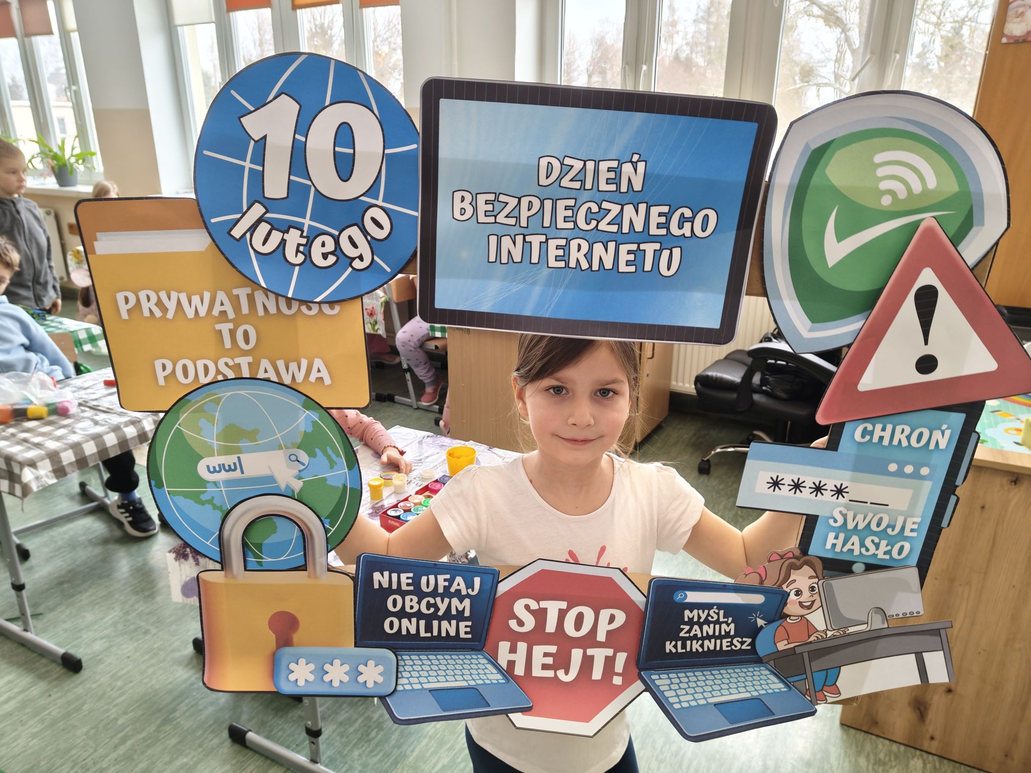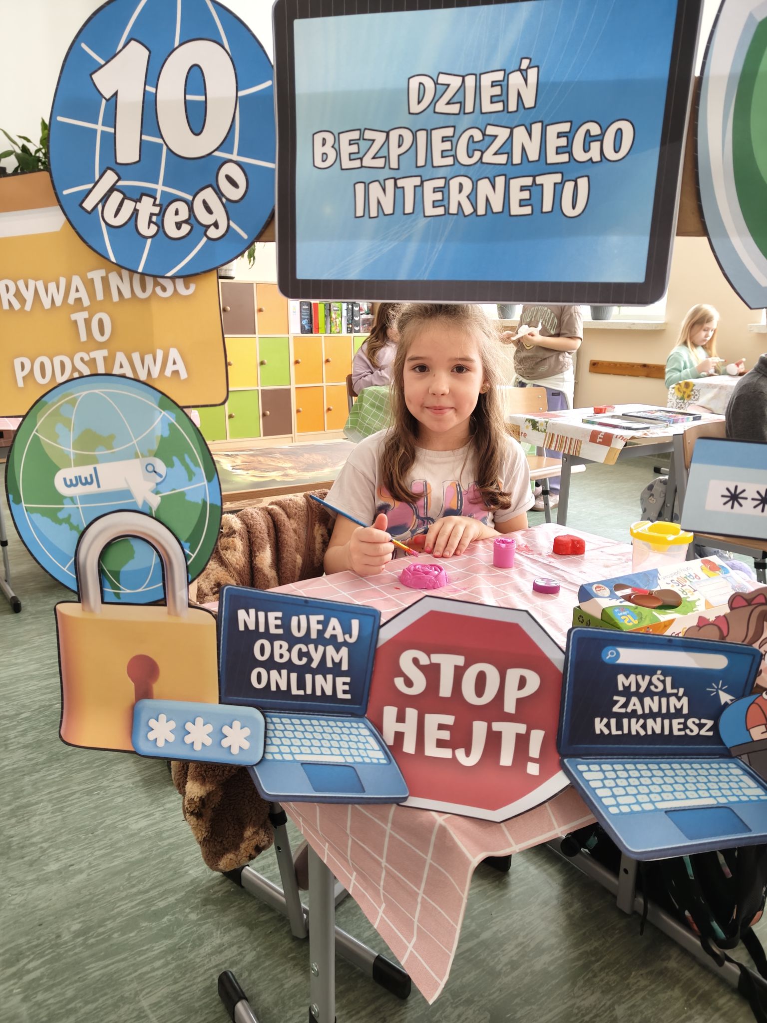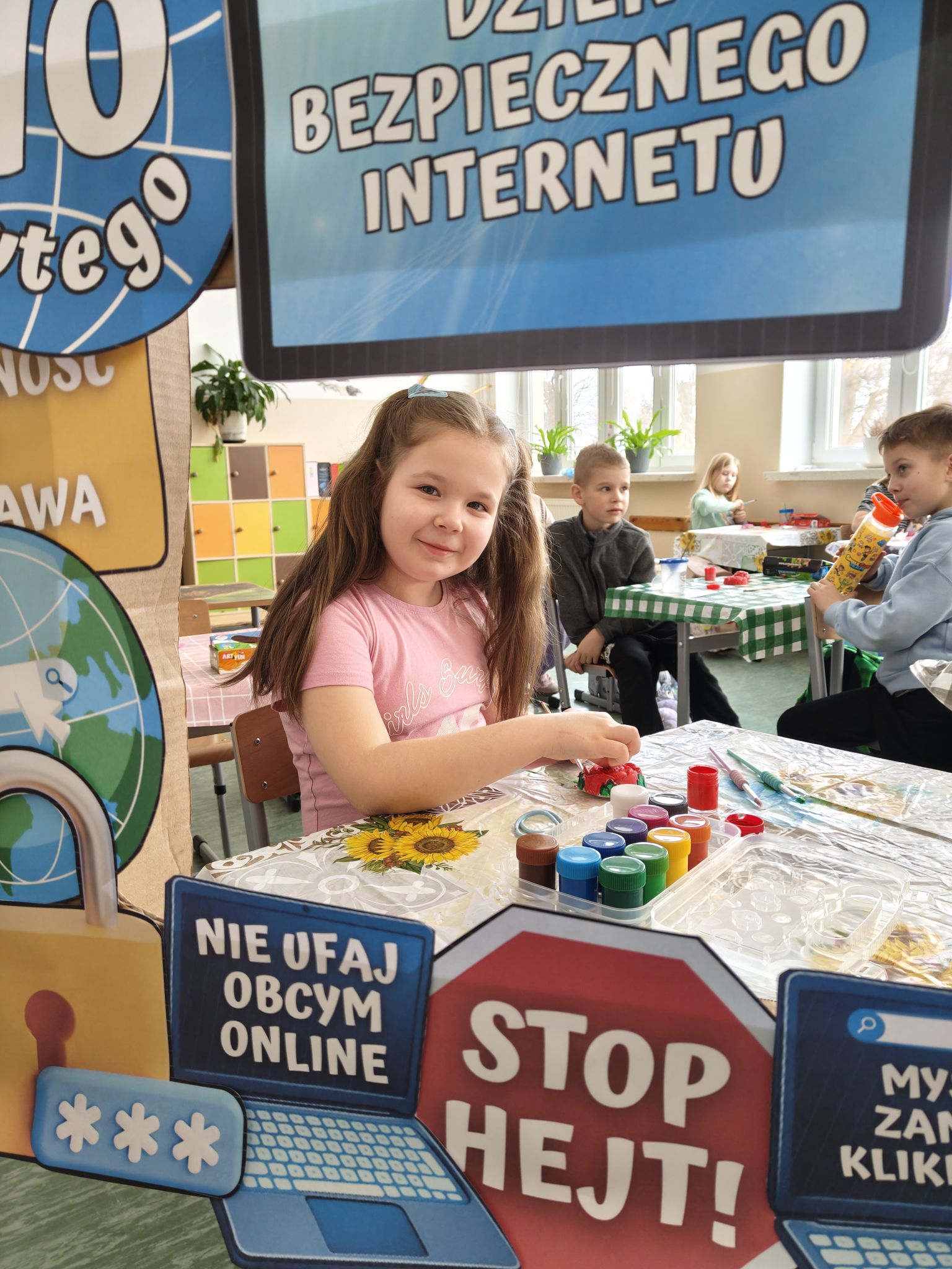 Uczniowie klasy Ia wzięli udział w zajęciach dotyczących „Dnia Bezpiecznego Internetu”. Podczas zajęć przypomnieli sobie podstawowe zasady bezpiecznego korzystania z Internetu, zwracając uwagę na ochronę swoich danych osobowych, odpowiednie zachowanie w sieci oraz zachowanie umiaru w korzystaniu z urządzeń elektronicznych. Dzieci dowiedziały się również, że czas spędzany przed ekranem można ciekawie i twórczo zastąpić aktywnościami rozwijającymi wyobraźnię i zdolności manualne. W ramach zajęć praktycznych uczniowie wykonywali odlewy gipsowe oraz samodzielnie je malowali. Prace te pozwoliły dzieciom nie tylko pobudzić kreatywność, ale także doskonalić precyzję i cierpliwość podczas pracy. Było to świetne połączenie nauki z twórczymi zajęciami praktycznymi, udowadniając że aktywności offline są równie wartościowe i interesujące.