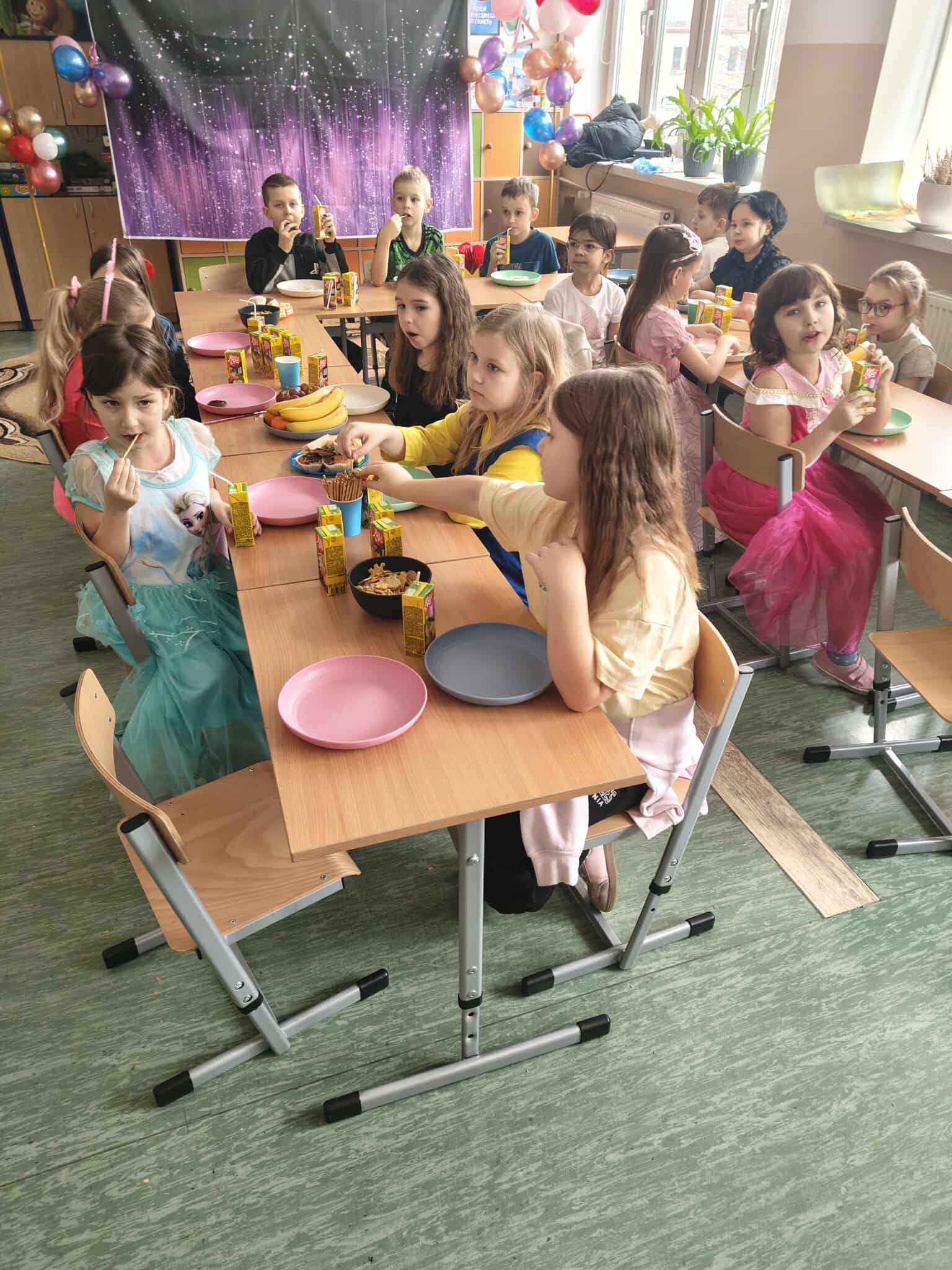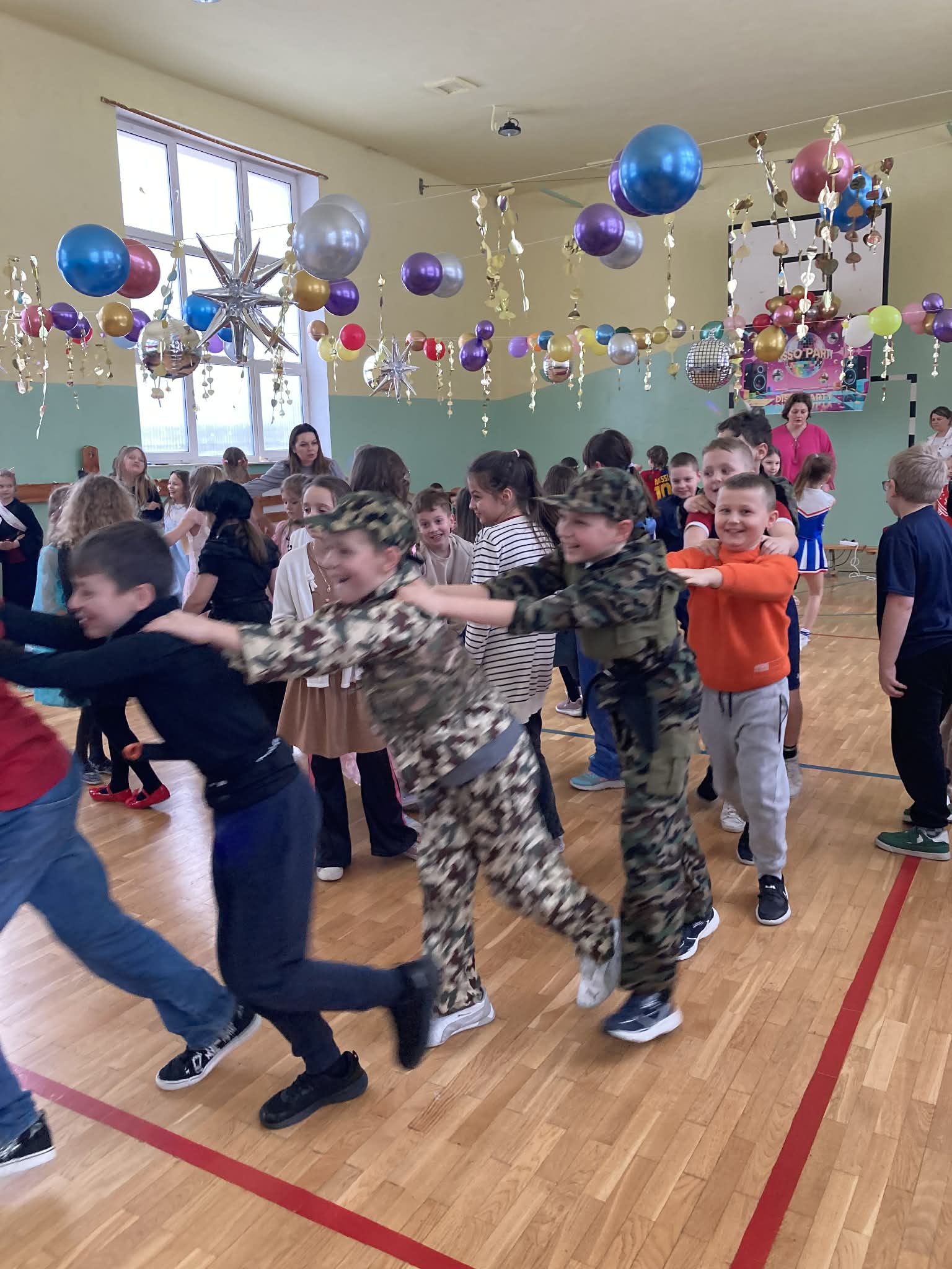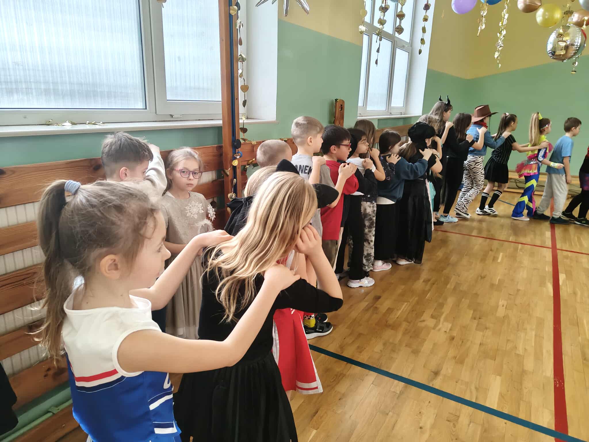 W karnawale same bale! Uczniowie klas I–III uczestniczyli w radosnej zabawie karnawałowej, która przebiegała w miłej i bezpiecznej atmosferze. Dzieci bawiły się doskonale, a dobry humor towarzyszył wszystkim uczestnikom. W klasach został przygotowany poczęstunek przez rodziców, natomiast Rada Rodziców zadbała o dodatkowe paczki dla uczniów. Wydarzenie dostarczyło dzieciom wiele radości, sprzyjało integracji zespołów klasowych oraz wzmacniało poczucie wspólnoty szkolnej.