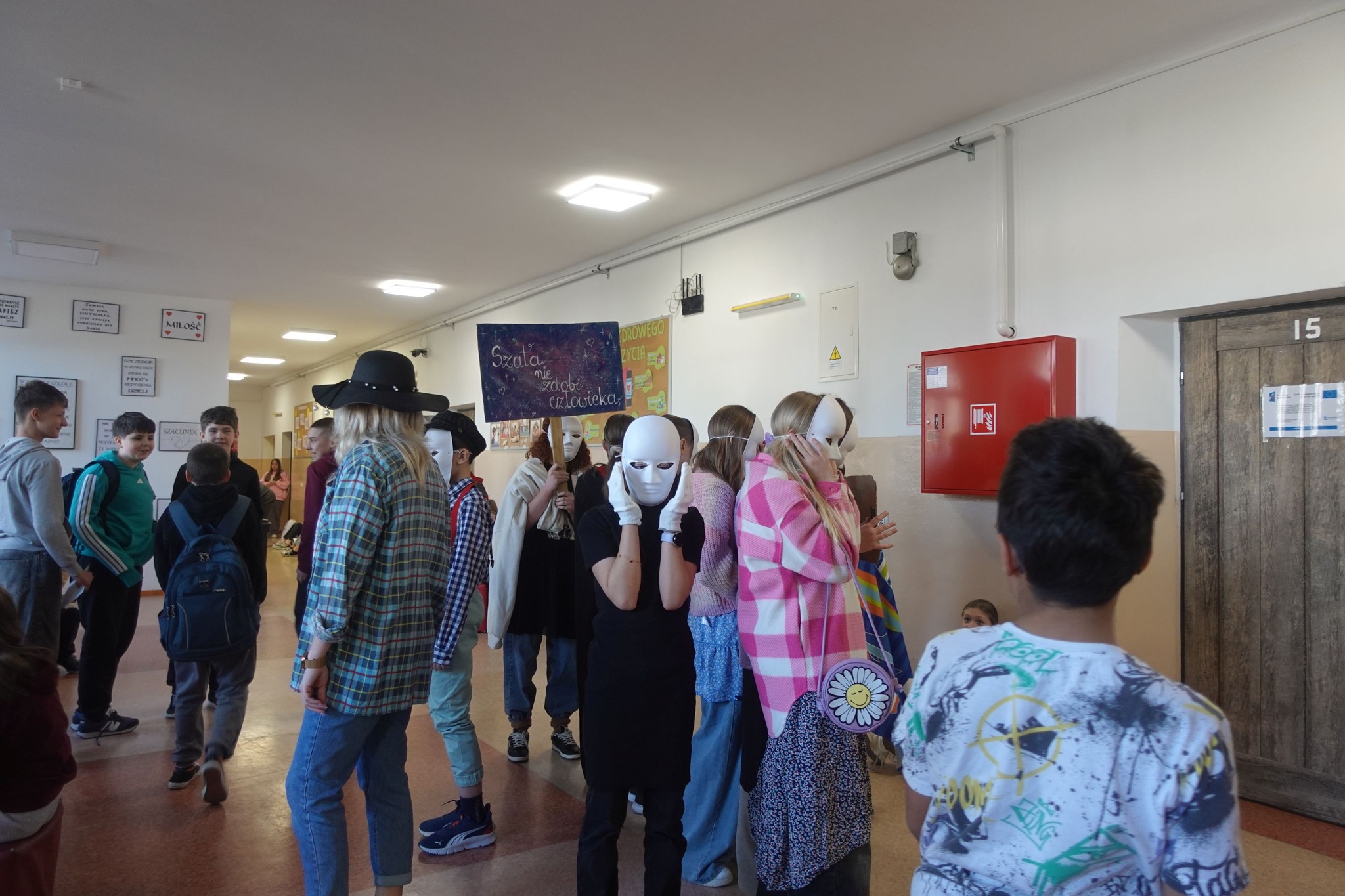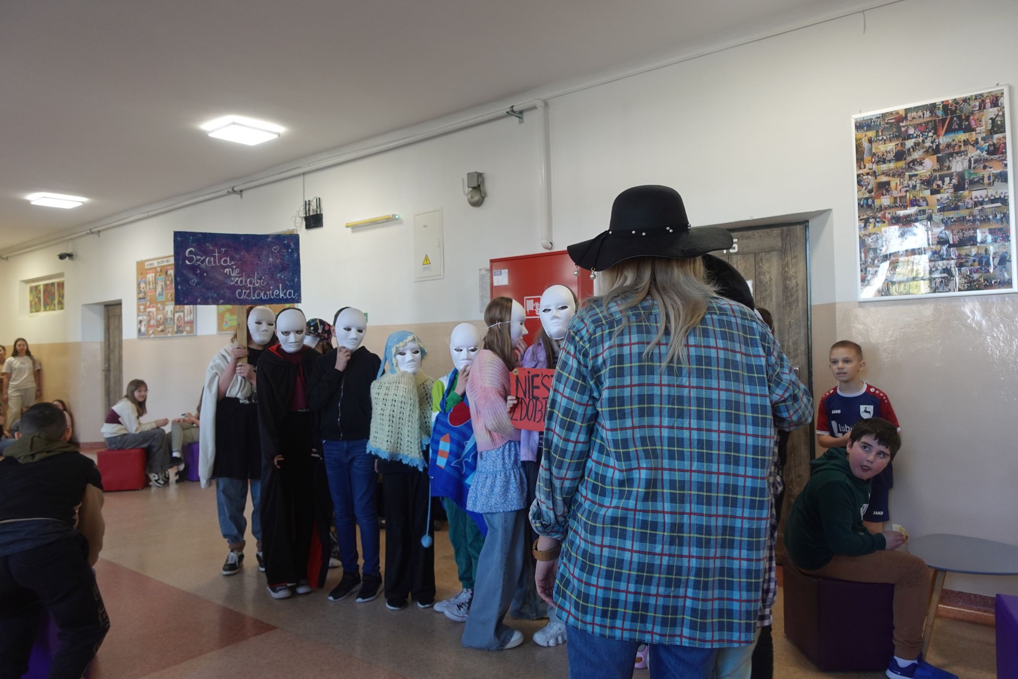 Podczas happeningu aktorzy pokazali się w różnych stylizacjach, podkreślając tym samym, jak ludzie bywają niesprawiedliwie oceniani na podstawie pierwszego wrażenia. Przedstawione scenki skłaniały do refleksji i uświadamiały, że łatwo można się pomylić, kierując się jedynie tym, co widać na zewnątrz. Wydarzenie angażowało również publiczność, zachęcając uczniów do przemyśleń i rozmowy na temat stereotypów oraz uprzedzeń.