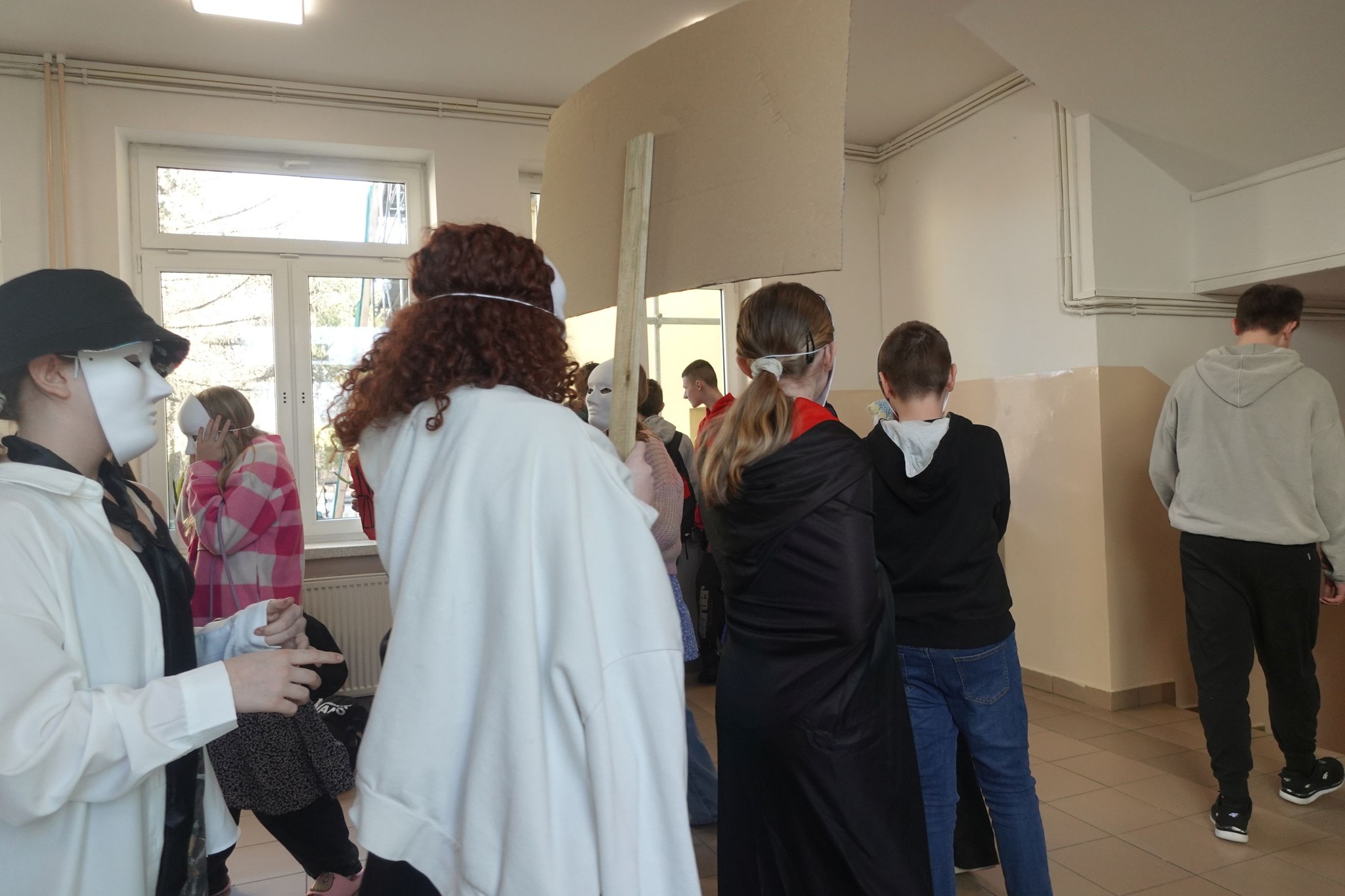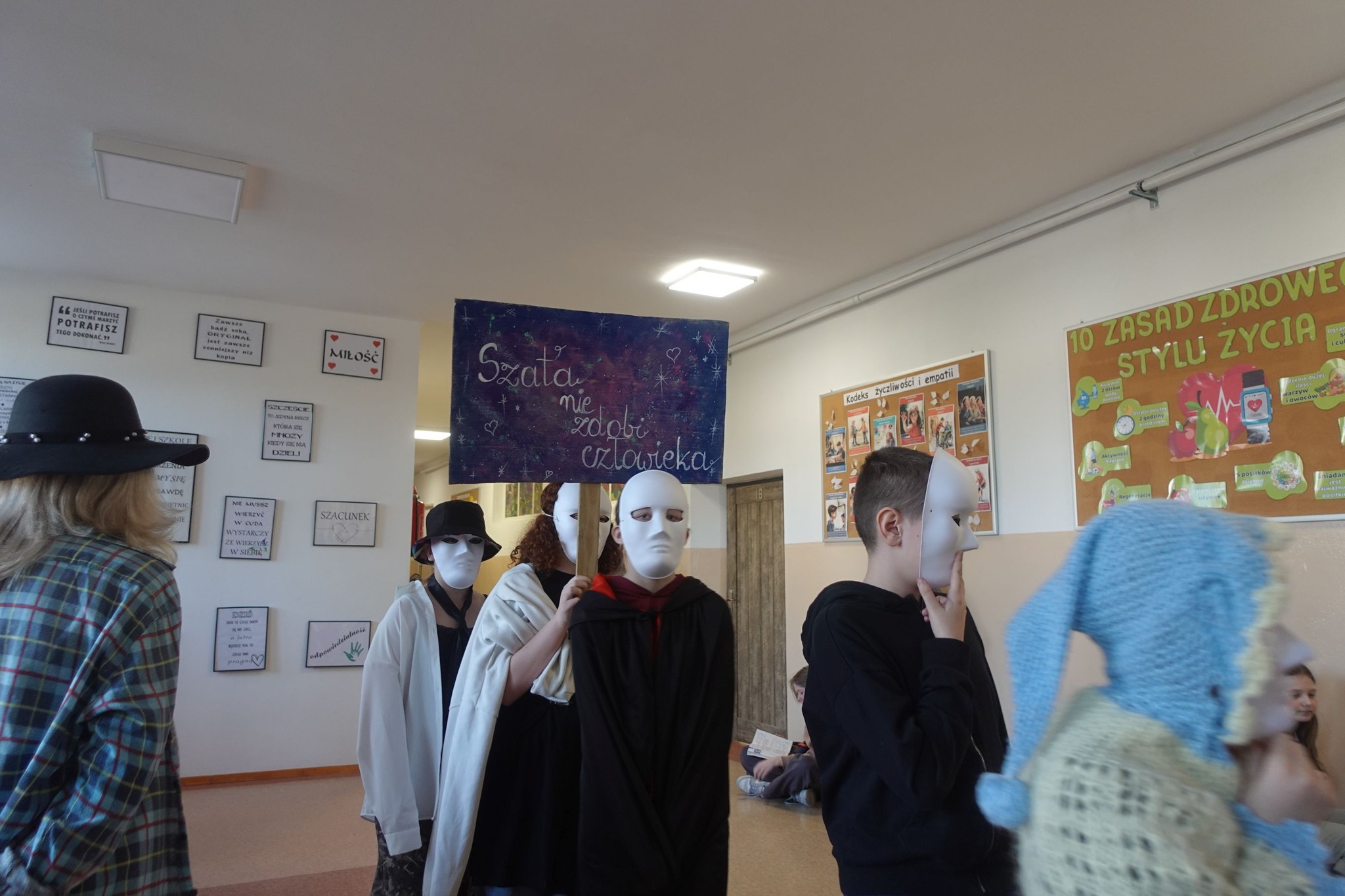 6 marca w naszej szkole odbył się happening pod hasłem „Nie szata zdobi człowieka”. Było to wyjątkowe wydarzenie artystyczno-społeczne przygotowane i zaprezentowane przez Teatr Ergo. Celem było zwrócenie uwagi uczniów na ważny problem społeczny, jakim jest ocenianie innych ludzi jedynie na podstawie wyglądu, ubioru czy statusu materialnego.