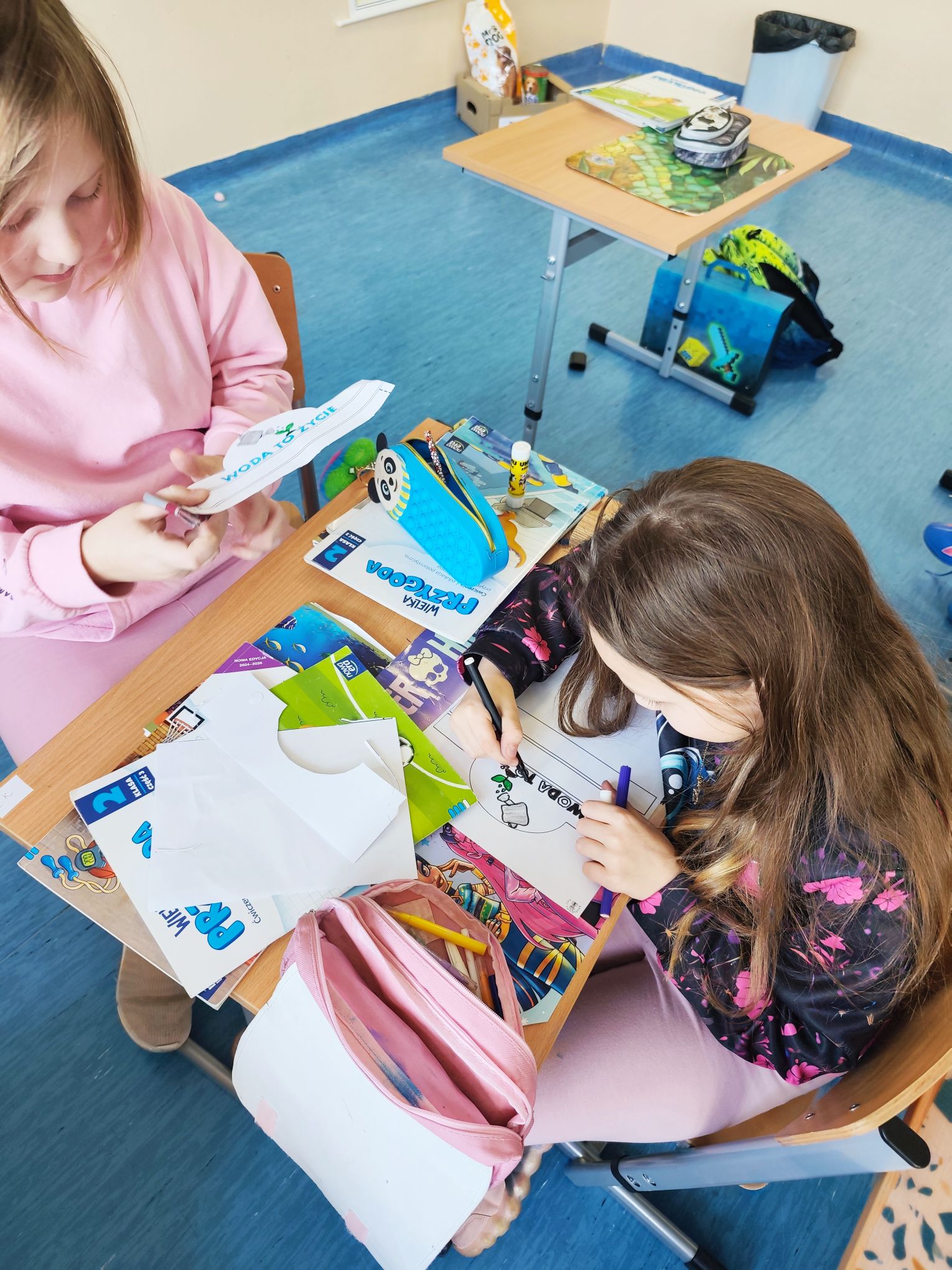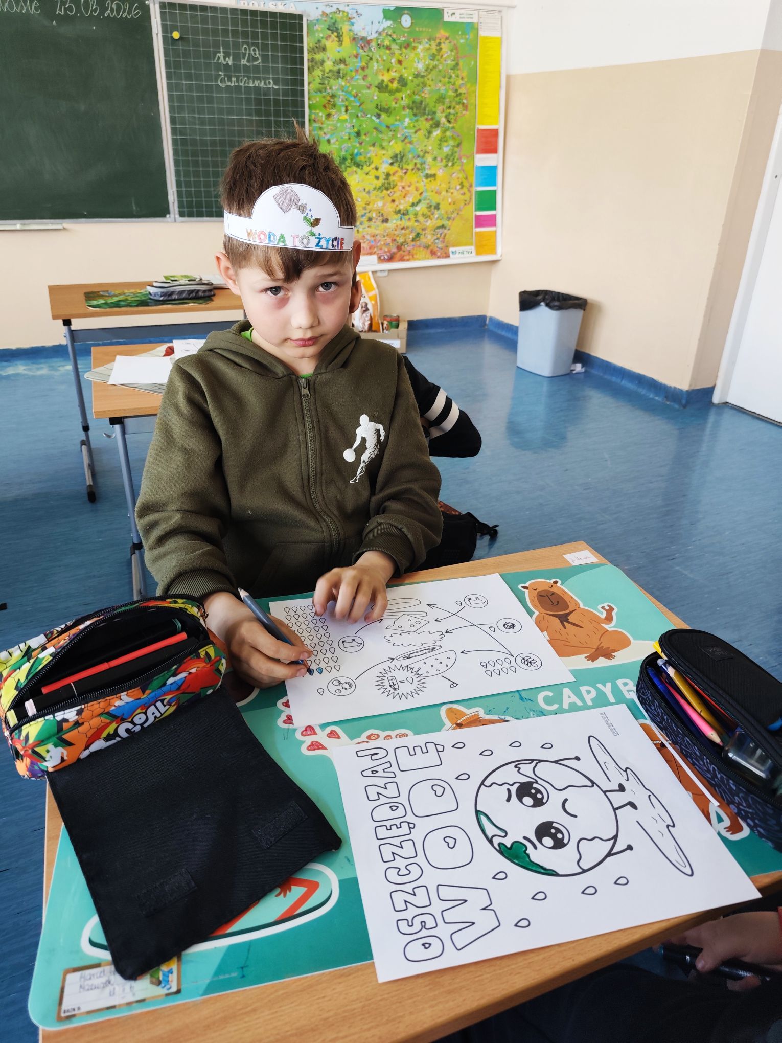 Podczas zajęć dzieci aktywnie uczestniczyły w dyskusji, rozwiązywały quizy tematyczne, a także wykonały plakat związany z ochroną wody, który pozwolił im w twórczy sposób utrwalić zdobytą wiedzę.