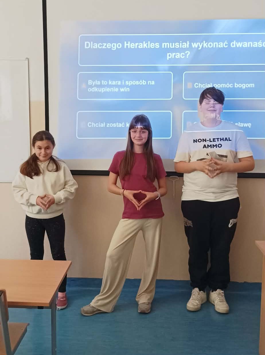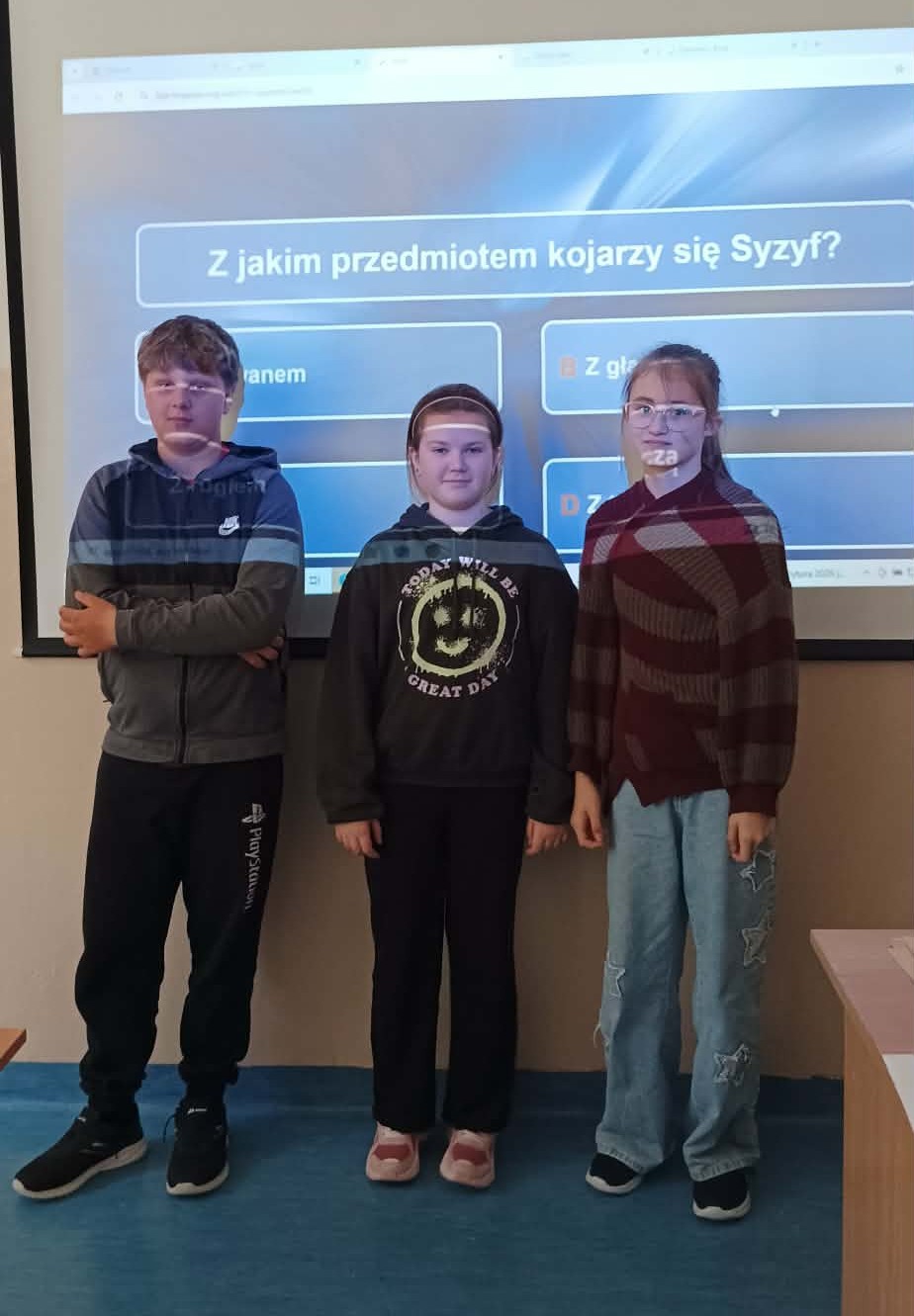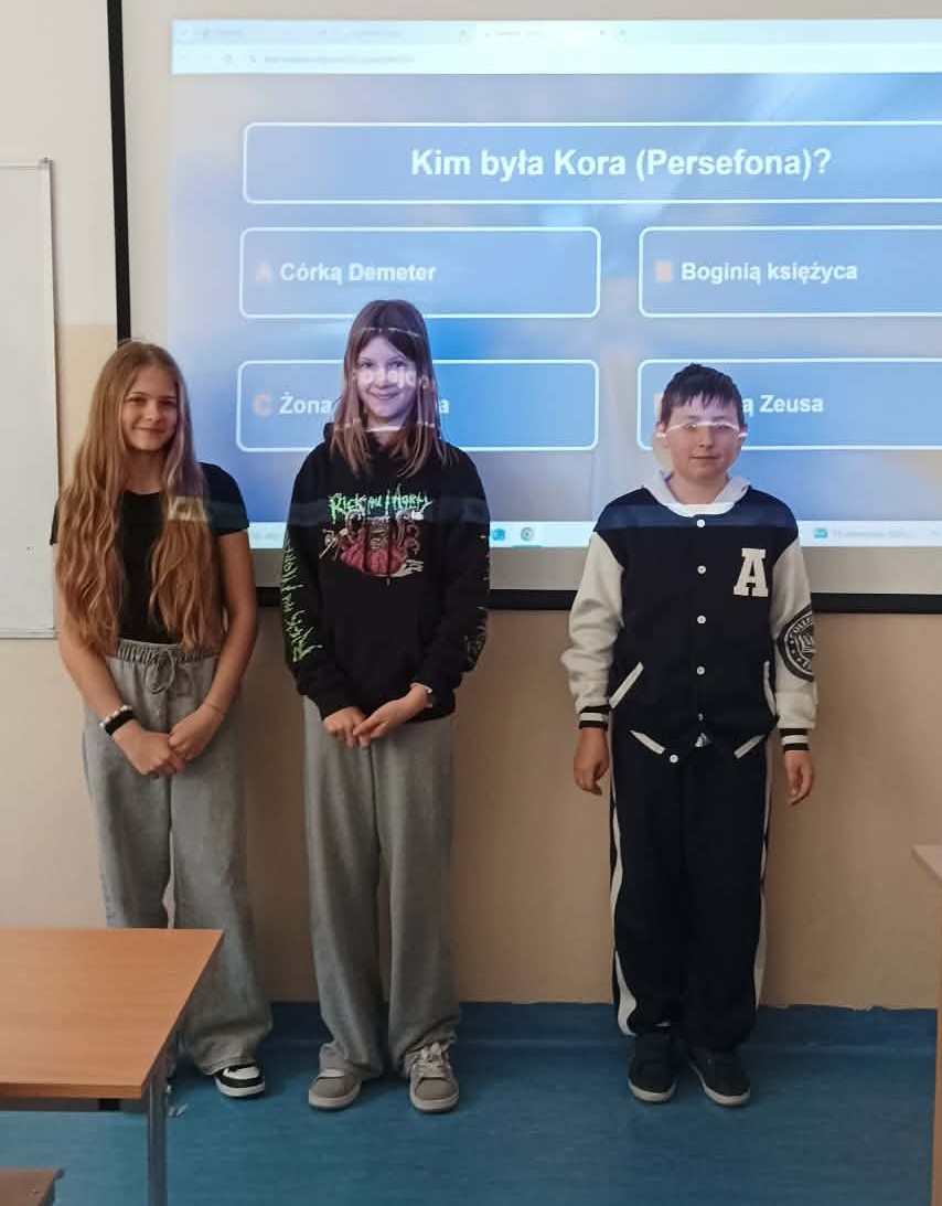 13 kwietnia w naszej szkole odbył się konkurs mitologiczny dla uczniów klasy 5, który dostarczył uczestnikom wielu emocji i dobrej zabawy. Uczniowie zostali podzieleni na 6 grup, a każda z nich miała za zadanie zmierzyć się z pytaniami dotyczącymi mitologii. Konkurs został przeprowadzony w formie popularnej gry „Milionerzy”. Każda grupa otrzymała inny mit, na podstawie którego przygotowane były pytania. Uczniowie musieli wykazać się wiedzą, spostrzegawczością oraz umiejętnością współpracy w zespole. Rywalizacja była bardzo wyrównana, a uczestnicy z dużym zaangażowaniem odpowiadali na kolejne pytania, starając się zdobyć jak najwyższe kwoty w grze. Nagrodą za udział w konkursie były oceny, uzależnione od kwoty wygranej w „Milionerach”, co dodatkowo motywowało uczniów do jak najlepszych wyników. Wydarzenie przebiegło w miłej atmosferze i było świetną okazją do nauki poprzez zabawę.